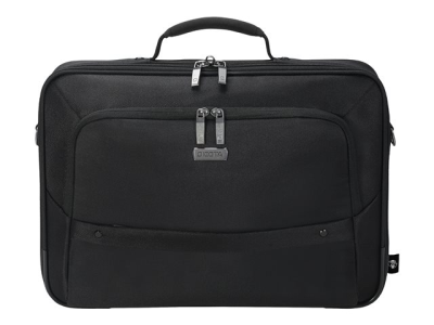 Le compartiment principal refermable à clapet protège votre ordinateur portable de 14 à 15,6" avec un rembourrage complet en mousse haute densité (HDF) et Nylex souple, à un cadre renforcé de métal et à une fixation fiable avec une sangle. Votre tablette jusqu'à 10,5" est également casée en toute sécurité dans sa poche spéciale rembourrée. La poche avant spacieuse permet de mettre de l'ordre avec son compartimentage fonctionnel pour smartphone, batterie externe, stylos et autres accessoires. Un compartiment supplémentaire zippé sur la partie inférieure avant du sac permet de ranger le chargeur et les câbles. La poignée de forme ergonomique et rivetée, une sangle avec renfort rembourré aux épaules réglable en longueur ainsi que la lanière de fixation trolley au dos permettent une utilisation flexible et garantissent un transport confortable.