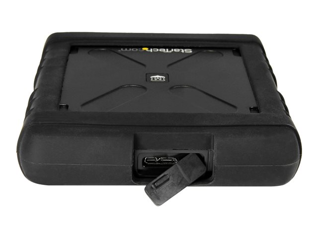 Ce boîtier solide est recouvert d'une gaine protective en silicone et conçu pour protéger votre disque dur contre les vibrations, les chutes et les chocs accidentels et inattendus. Il satisfait la norme militaire MIL-STD-810G et a subi des tests prouvant qu'il peut résister à des chutes jusqu'à 4 mètres. Il a subi des tests des chute avec un SSD dans le boîtier.