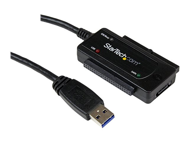 Le câble adaptateur USB 3.0 vers IDE/SATA USB3SSATAIDE connecte tout disque dur SATA 2,5/3,5 pouces ou IDE standard à un ordinateur via un port USB 3.0 (rétrocompatible avec USB 2.0). Cet adaptateur vous permet de connecter un lecteur seul, sans boîtier, vous permettant ainsi d'éviter toute perte de temps ou difficulté.