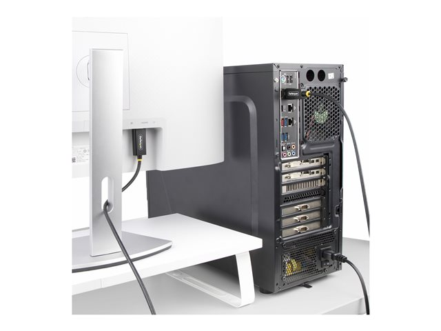 Connectez un ordinateur de bureau doté d'une sortie DisplayPort à un moniteur HDMI capable de prendre en charge le 4K 60Hz en plage dynamique élevée (HDR) à l'aide de ce câble adaptateur actif DisplayPort vers HDMI de 1 mètre.