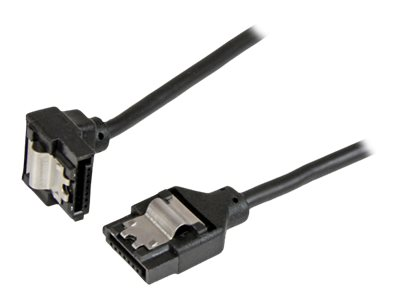 Il possède un connecteur SATA verrouillable droit et un autre verrouillable à angle droit qui facilite la connexion à votre lecteur SATA, même si l'espace près du disque est réduit. Les connecteurs verrouillables permettent également d'établir une connexion sécurisée aux disques durs SATA et aux cartes mères qui prennent en charge cette fonctionnalité.