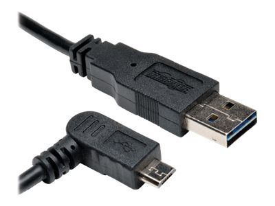 Tripp Lite 3ft USB 2.0 High Speed Cable Reversible A to Right Angle 5Pin Micro M/M 3' - Câble USB - Micro-USB de type B (M) pour USB (M) - USB 2.0 - 91 cm - connecteur à angle droit - noir