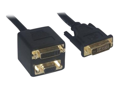 Cet éclateur VGA vous permet de connecter deux écrans: l'un equipé d'un câble VGA, et l'autre d'un câble DVI sur un seul ordinateur possédant une prise DVI.