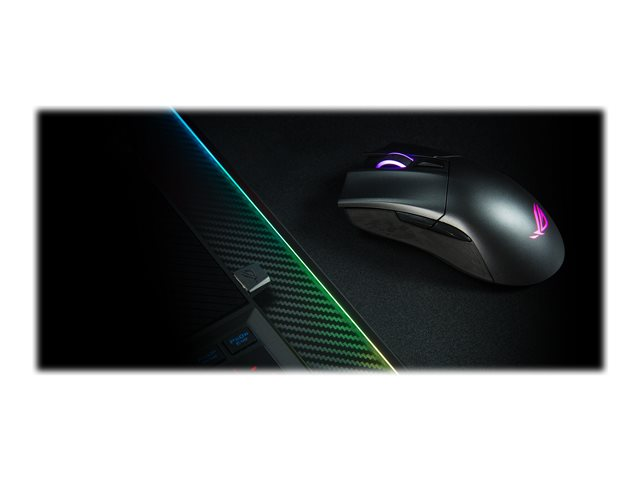 La ROG Gladius II Wireless propose deux types de connectivités non filaires qui répondent aux différents besoins des utilisateurs. Activez le dongle USB 2,4 Gz/1 ms en un rien de temps ou appairez la souris à votre PC via la connexion Bluetooth (BLE) à basse consommation d'énergie.