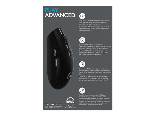 Logitech G G305 - Souris - optique - 6 boutons - sans fil - 2.4 GHz - récepteur sans fil USB - noir 910-005282