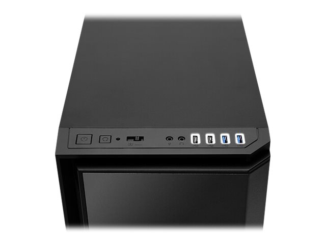 Fonctionnalités du boîtier système | Commande manuelle de la vitesse du ventilateur, baies pour lecteur sans vis, filtre à air, filtre antipoussières amovible, disjoncteur d'unité centrale, orifices de refroidissement par eau, capable d'accueillir un radiateur de 140 mm à l'arrière, capable d'accueillir un radiateur de 360 mm sur le panneau avant |