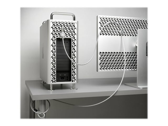 Désormais, vous pouvez protéger votre Mac Pro et Pro Display XDR avec élégance : le kit de sécurité dédié se marie tout spécialement au design des produits Apple, sans qu'aucun outil ni modification ne soit nécessaire. Facile à installer, il utilise la plaque alvéolée du châssis de l'appareil comme ancre. Il inclut un verrou et un câble en acier carbone de 2,4 m.