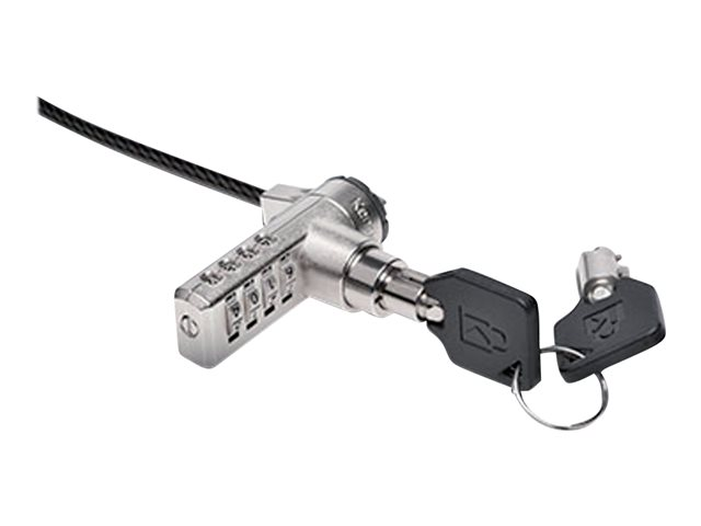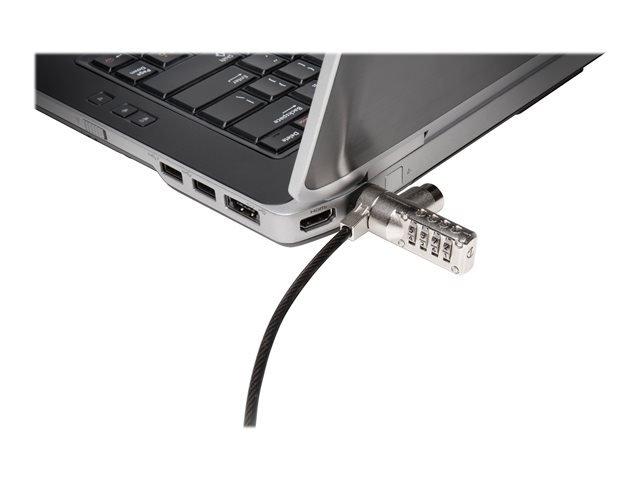 Protégez votre ordinateur portable et ses données confidentielles grâce au câble de sécurité à combinaison avec clé passe Vous pouvez choisir un code personnel à 4 chiffres parmi 10 000 combinaisons possibles. En cas d'oubli du code, une clé passe est disponible pour déverrouiller rapidement le câble de sécurité. Le verrou en acier est inviolable et intègre notre technologie de verrouillage en T (T-Bar ), qui se fixe solidement à l'encoche de sécurité Kensington, présente sur la plupart des ordinateurs portables.