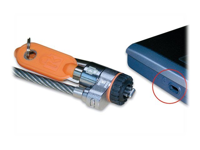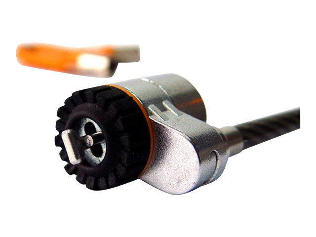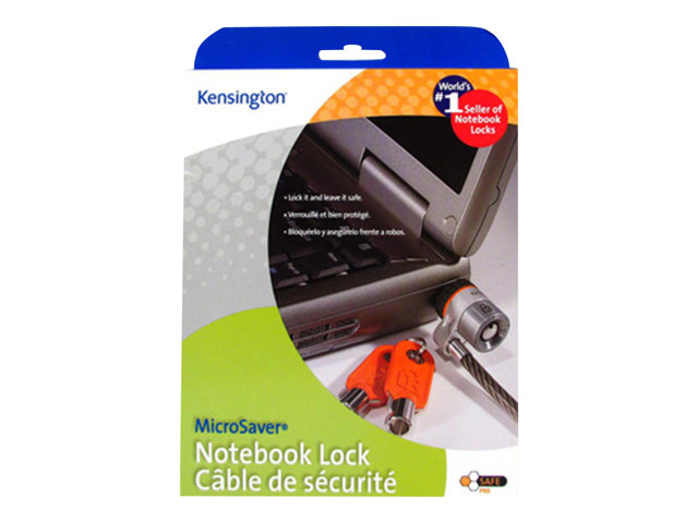 La tête du câble MicroSaver est équipée du mécanisme de verrouillage en T. La barre en forme de T est parfaitement adaptée à l'encoche de sécurité Kensington Une protection en caoutchouc assurant une adaptation parfaite entre le verrou et la serrure de sécurité contribue à protéger votre matériel. Un autre élément dissuasif est l'indicateur d'effraction. Quand un verrou Kensington MicroSaver fait l'objet d'une tentative d'effraction, il s'autoverrouille et peut même piéger des clés étrangères.