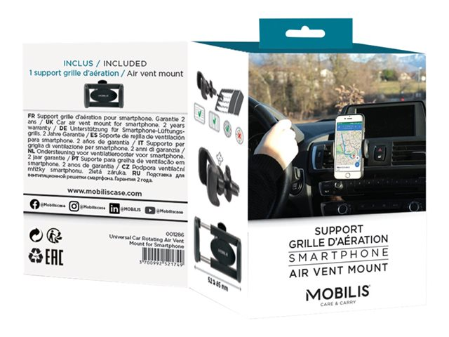 Découvrez le support voiture universel pour smartphone à utiliser lorsque vous prenez la route pour un maximum de confort. Installez simplement votre smartphone sur le support. Celui-ci se fixe rapidement sur la grille d'aération de votre véhicule. Il est d'ailleurs compatible avec toutes les grilles d'aération. Le support fonctionne avec tous les smartphones. Vous pouvez ainsi utiliser votre appareil en kit main libre. La tête rotative du support à 360 degrés vous permet d'orienter le smartphone à votre convenance en portrait ou en paysage, suivant vos besoins. Le Car Phone 6" universel est l'accessoire indispensable pour un trajet en voiture serein et en toute sécurité, que vous preniez la route tous les jours pour votre profession ou bien occasionnellement pour une utilisation personnelle.