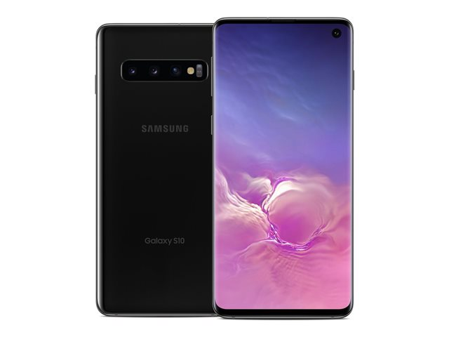 Samsung Galaxy S10 - 4G smartphone - double SIM - RAM 8 Go / Mémoire interne 128 Go - microSD slot - écran OEL - 6.1" - 3040 x 1440 pixels - 3 x caméras arrière 12 MP, 12 MP, 16 MP - front camera 10 MP - noir prisme