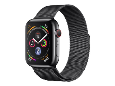 Apple Watch Series 4 (GPS + Cellular) - 44 mm - boîtier en acier noir inoxydable - montre intelligente avec boucle milanaise - maille d'acier - boîtier noir - taille de bande 150-200 mm - 16 Go - Wi-Fi, Bluetooth - 4G - 47.9 g