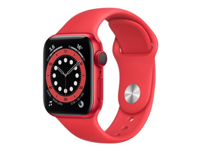 Apple Watch Series 6 (GPS + Cellular) - (PRODUCT) RED - 40 mm - aluminium rouge - montre intelligente avec bande sport - fluoroélastomère - rouge - taille du bracelet : S/M/L - 32 Go - Wi-Fi, Bluetooth - 4G - 30.5 g M06R3NF/A
