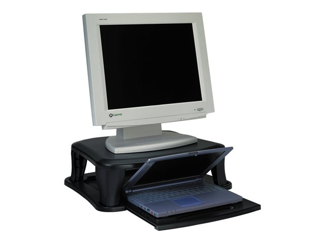 Ce stand vous permet de surélever votre écran pour gagner de la place sur le bureau. Vous pouvez placer sur la partie amovible votre ordinateur portable. Ainsi tout votre matériel n'occupe pas plus de place qu'un simple écran d'ordinateur. Vous pouvez accéder simplement et rapidement à tous les ports de votre portable.