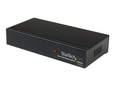 Le répartiteur vidéo 2 ports VGA ST122LEU permet de lire une vidéo VGA, à partir d'une source VGA unique, sur deux moniteurs de manière simultanée. Parfait pour les salles de classe, les salons professionnels ou les écrans de magasin où une excellente qualité audio est nécessaire sur plusieurs moniteurs. Le fonctionnement simple plug-and-play permet une configuration rapide et facile, pour être opérationnel en quelques minutes. Le ST122LEU prend en charge des écrans dotés d'une bande passante pouvant atteindre 250 MHz, offrant de remarquables résolutions jusqu'à 1920 x 1440. Un circuit d'amplification intégré vous permet de situer vos écrans jusqu'à 64 mètres de votre source. Bénéficie de la garantie StarTech.com de 2 ans et de l'assistance technique à vie gratuite.