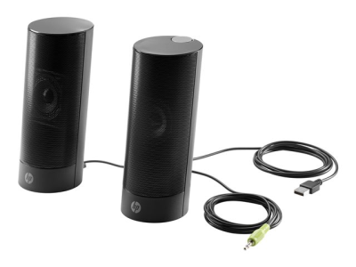 Ajoutez rapidement et facilement un son stéréo à votre espace de travail avec les haut-parleurs professionnels USB HP v2, un ensemble de haut-parleurs de bureau élégants, alimentés via le port USB de votre PC.