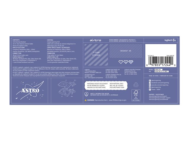 ASTRO Gaming A10 Gen 2 - Micro-casque - circum-aural - filaire - jack 3,5mm - lilas 939-002078