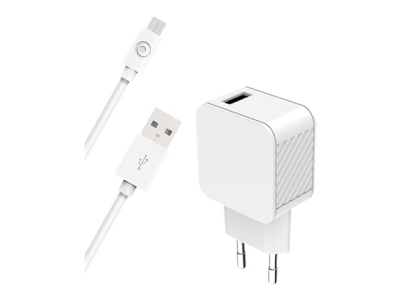 BigBen Connected - Adaptateur secteur - 100 % de plastique recyclé - 2.4 A - Smart IC (USB) - sur le câble : Micro-USB - blanc CS24AACBLMICRW