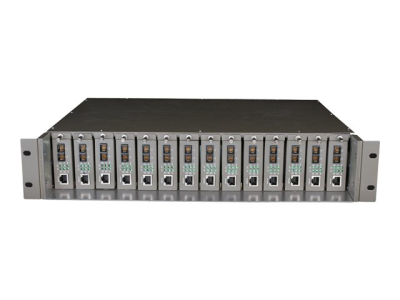 Le châssis rackable 14 emplacements TL-MC1400 est spécialement conçu pour contenir 14 convertisseurs de média TP-LINK pour une alimentation centrale, ce qui signifie plus de place et moins de cordons d'alimentation.