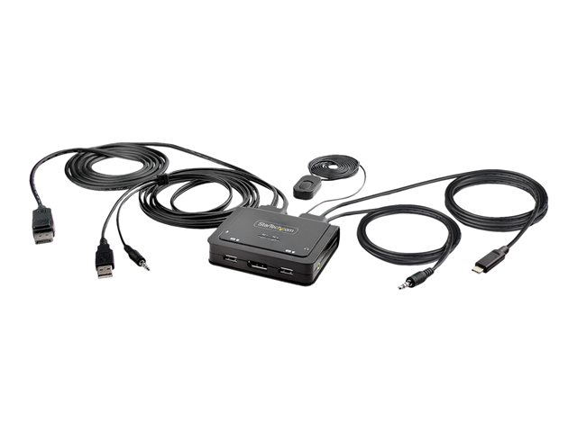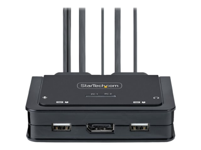 Ce commutateur KVM hybride permet aux utilisateurs de basculer entre un ordinateur de bureau compatible USB Type-A et DisplayPort et un ordinateur portable compatible USB Type-C (DP Alt-Mode), pour partager un clavier, une souris, des périphériques d'entrée/sortie audio et un seul moniteur DisplayPort 4K 60 Hz.