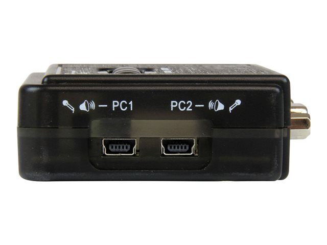 Le kit commutateur KVM USB noir 2 ports avec audio et câbles vous permet de commander deux ordinateurs dotés de ports USB à l'aide d'un seul ensemble clavier, souris et moniteur VGA ; il permet également le fonctionnement à touche directe et à bouton poussoir du panneau supérieur pour basculer entre les écrans connectés. Conçu pour une intégration parfaite dans tous les environnements, le commutateur KVM USB offre une conception compacte (environ la taille d'un jeu de cartes) ; il est alimenté par les ordinateurs auxquels il est connecté, supprimant ainsi la nécessité d'une alimentation externe. Le commutateur KVM USB est une solution idéale pour quasiment toutes les applications, il prend en charge des résolutions vidéo d'au plus 2048 x 1536 ainsi que la commutation audio. Le commutateur KVM USB inclut deux câbles hôtes 1,22 m VGA 2-en-un et USB, pour une installation rapide ; il offre une solution KVM prête à l'emploi. Le commutateur KVM permet un contrôle pratique et fiable de plusieurs ordinateurs à partir d'une seule station périphérique, il est accompagné d'une garantie StarTech.com de 2-ans et d'une assistance technique gratuite à vie.