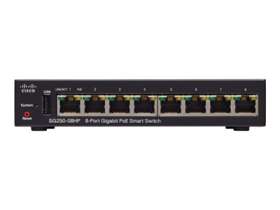 Cisco 250 Series SG250-08HP - Commutateur - intelligent - 8 x 10/100/1000 (PoE+) - de bureau - PoE+ (45 W)